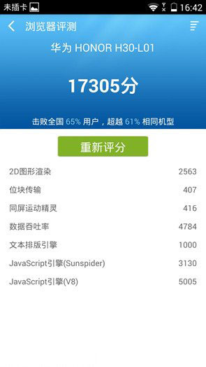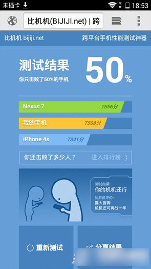在比机机手机性能网页版测试中,得益于海思新四核处理器,在性能方面荣耀3C 4G版的综合表现明显要好于红牛V5的。