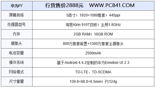 在进行华为P7评测之前,我们先来看看华为P7配置参数情况。
