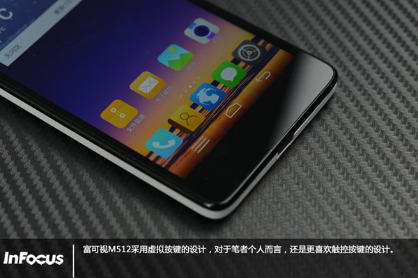 富可视M512屏幕底部的按键采用了虚拟按键设计对于笔者个人而言,还是更喜欢触控按键方式。