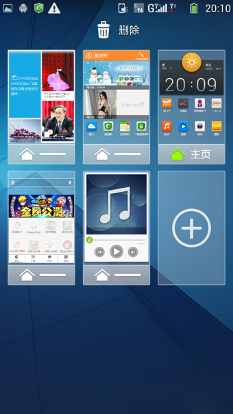 系统默认的主界面比较简洁大方,其中还包含了许多各具特色的小部件。另外该系统中还包括了很多手势操作功能,双指捏合可快速进入桌面预览状态,并可以编辑屏幕的数量与排列顺与等操作。 长按桌面空白出即可呼出快捷添加界面,可添加小插件、快捷方式、文件夹等操作。