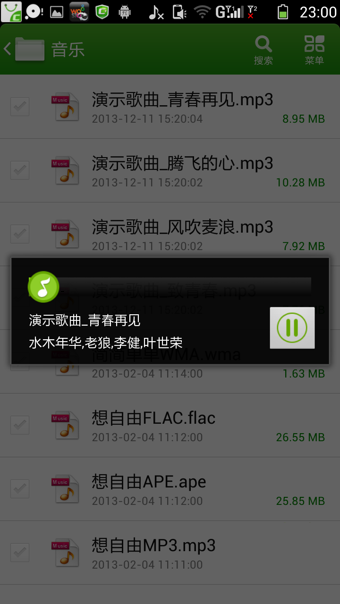 首先在音乐方面,小编体验了MP3、WMA、APE和FLAC这四个格式的音乐。该手机均可以正常播放,也就是说基本上常用格式的音乐酷派春雷HD都可以支持。