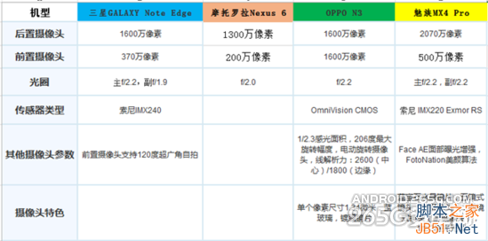 ▲手机摄像头参数对比