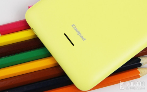 在该机背面下半部则是酷派商标和扬声器,由于扬声器设计在背面,所以在外放音乐时,如果背面平放到桌面上或者手握时,都可能会影响到音效。