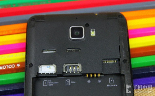 打开后盖看到电池和卡槽部分,从图中可以看出,大神F1极速版支持双卡双待,卡1支持LTE/TD-SCDMA/GSM制式,卡2支持GSM制式,这对普通消费者来说非常实用。