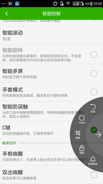 在该机的智能控制选项里,我们可以开启浮动C键和智能多屏功能,其中,浮动C键融合了用户在日常生活中使用频率比较高的一些功能,可有效减少实体按键的损耗。而智能多屏,则通过启动侧边栏的应用程序,实现一边看新闻一边发信息,使屏幕空间得到有效利用。