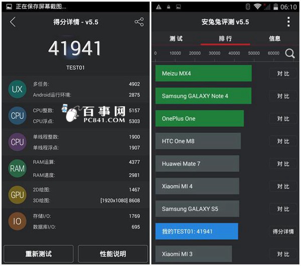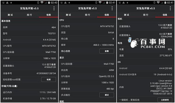 从上面的测试得知,大可乐3安兔兔跑分成绩为:41941分,将近4.2万跑分,性能上偏高端性能水准了。虽然联发科MT6752处理器是一款定位在中端级别的处理器,但是在性能方面是直接赶超高通骁龙801的水平。