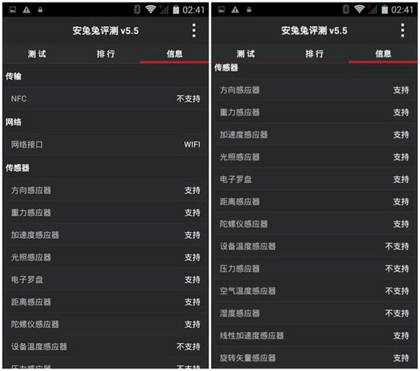 大可乐3搭载了1.7Ghz主频的64位高通骁龙615八核处理器,运行2GB内存,通过最新的安兔兔V5.5测试,跑分成绩如下图所示。