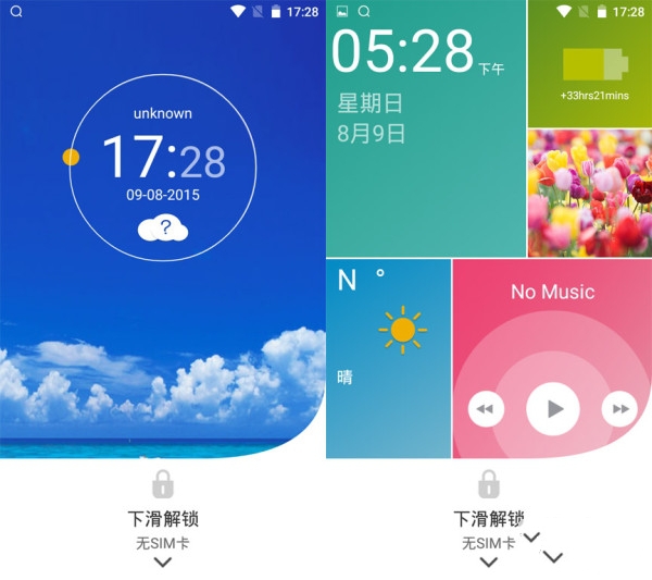 飞利浦S396搭载了基于Android5.1开发的PhilipsUI,有两个锁屏界面,通过左右滑动切换,锁屏2预制了日历、一键节电、天气、音乐等功能。