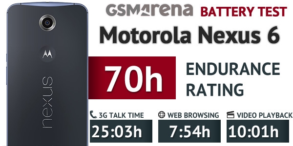 经过换算之后,Nexus 6的最终成绩为70小时。如果每天打电话、上网以及播放视频的时间均为1小时的话,可坚持3天不充电,当然这只是理想状态下。