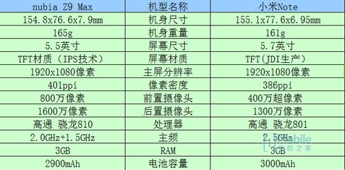 nubia Z9 Max与小米Note哪个好?nubia Z9 Max对比小米Note区别评测