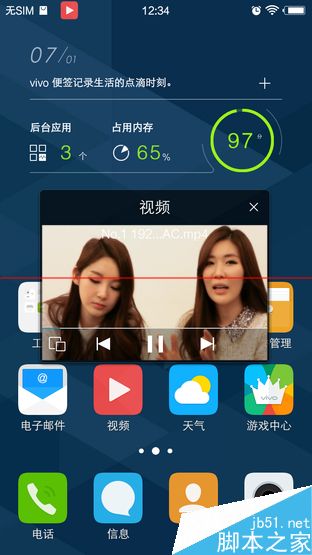 另外vivo Y29在播放视频时可以实现悬浮窗口播放功能,点击播放器左下角的“缩放”图标即可,这时整个界面就会弹回主桌面,但在界面中央依旧有着一个窗口在继续播放着这部视频,并且这个窗口的位置可以随意拖动,这样我们就可以一边玩微信一边看视频了。此外vivo Y29自带视频播放器也拥有锁屏防误操作、左侧上下滑动调节亮度、右侧上下滑动调节音量、左右滑动快进快退的功能,使用起来也是非常的方便。