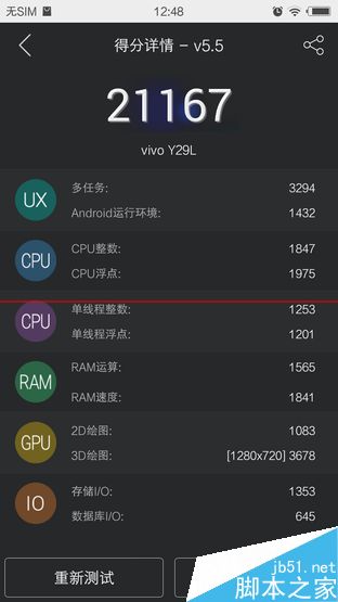 除了装备高通骁龙410处理器外,vivo Y29还拥有1GB RAM内存,在安兔兔测试方面,vivo Y29的成绩超过了两万分,其3D MARK的成绩分别在五千、两千五左右,相比高端旗舰级的智能手机,vivo Y29的跑分成绩并不算突出,不过实际体验还是非常流畅的,一些大型3D游戏运行起来也是没压力。