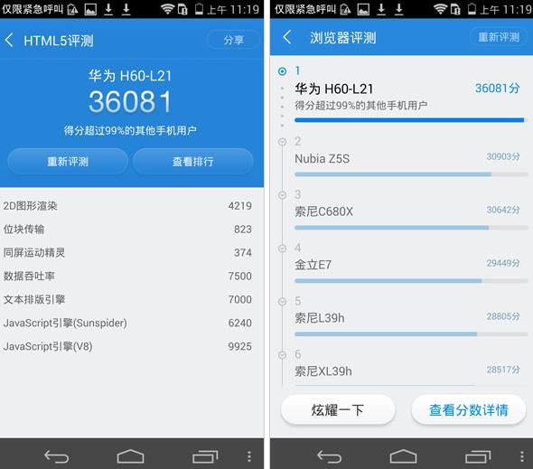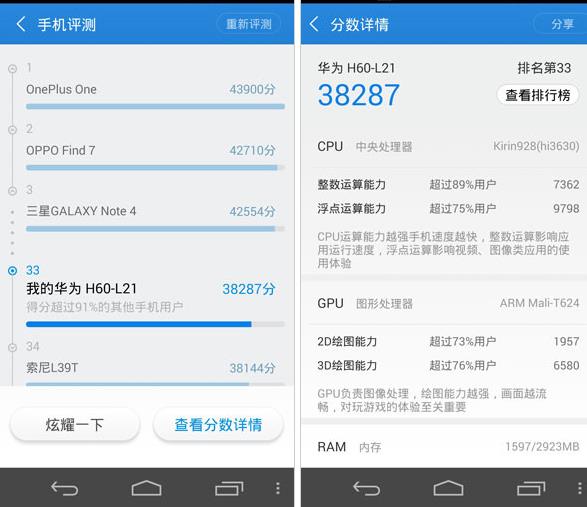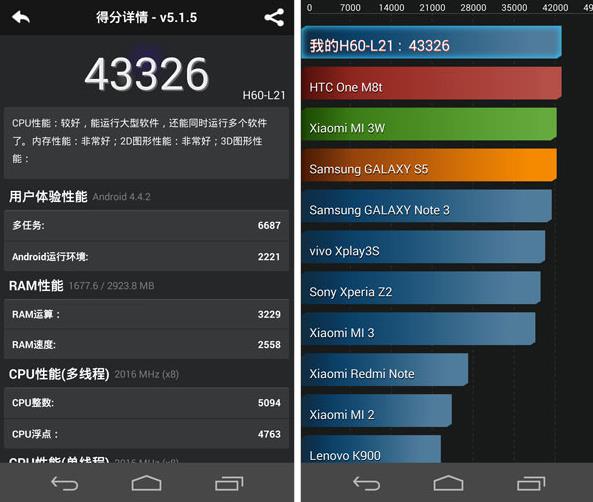 在鲁大师手机评测当中可以看到,手机的成绩排在前列位置,优于一些搭载高通骁龙800四核处理器的机型。
