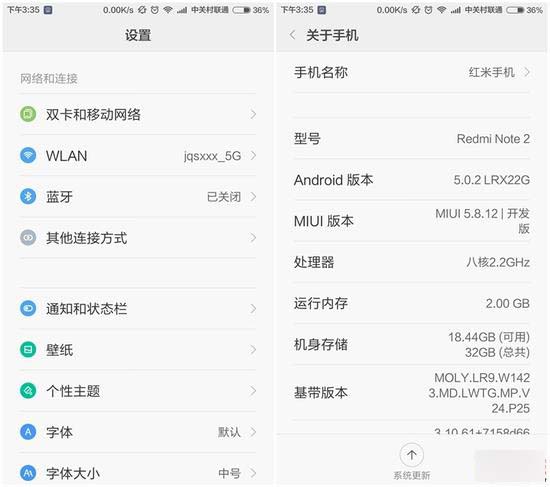 我们已经将手机升级至了MIUI 5.8.12开发版,Android版本为5.0.2。虽然目前小米2以上的全系手机均已支持升级至MIUI 7,虽然红米系列作为低端入门机型,但是在软件系统上依然保持了旗舰产品的待遇,要知道小米4的MIUI 7仍然是基于Android 4.4的,这一点值得称赞。