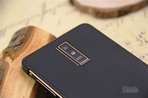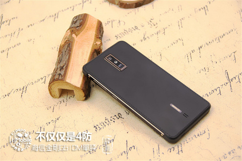 海信金刚的背面设计比较简洁,采用了塑料仿皮革设计,触感较为舒适。机身背面上方采用了800万像素摄像头搭配一颗LED补光灯,摄像头略有突起,但是采用了边框保护,至于拍照效果我们会在下文中为大家详细提到。