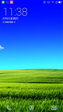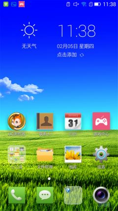 锁屏界面采用了上划解锁的方式,同时设置了通话信息以及拍照的快捷设置;主屏界面图标使用了拟物化设计。