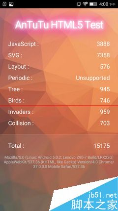 同时测试的HTML5性能也对得起中段机的位置,不是很强也能保证不错的浏览器体验。