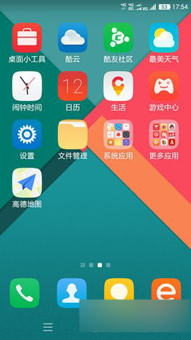 大神X7全网通版采用了酷派自家的COOLUI6.0,基于安卓4.4操作系统。COOLUI6.0采用了目前比较流行的扁平化风格,简约而不简单。在所有的界面下,点击屏幕右下角的三角形小圆点,就可以将虚拟按键栏隐藏。如果想找回虚拟按键栏的话,只需要用手指从屏幕底部向上滑动即可。
