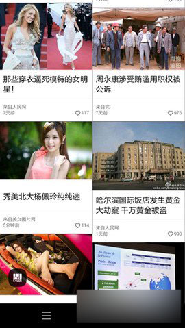 COOLUI6.0一大特色:在桌面上就可以看到内容丰富的图片瀑布流。将桌面拖拽至最后一屏,就可以看到时下最新的图片新闻。用户也可以根据自己的口味,自定义图片瀑布流中优先显示的内容。