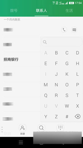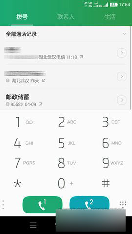 上图是大神X7全网通版的联系人和拨号界面。在联系人界面当中,可以通过右侧的字母来根据姓名的拼音首字母来查找联系人,非常方便。而在插入两张电话卡的时候,拨号界面会显示两个拨号按钮,用户可以自行选择用卡1或者卡2来拨打电话。