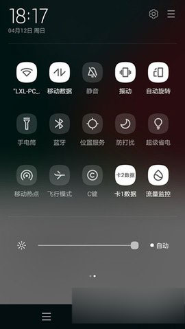 大神X7全网通版可以自由的切换使用卡1或者卡2的流量上网,只需要从屏幕顶部下拉出控制中心,点选数据按钮即可完成切换。