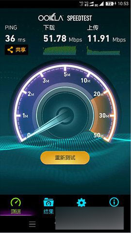 当然,实际上我们很难达到4G网络的理论下载峰值,不过经过测试,笔者的电信4G手机卡在大神X7全网通中的表现非常不错:测速网站显示下载峰值达到了 51.78Mbps,上传峰值达到了11.91Mbps;而通过大神X7全网通版的内置应用商店,下载游戏时的最大下载速度也达到了2.82M/s,这个速度比一般的家庭宽带要快得多。