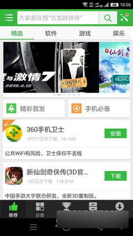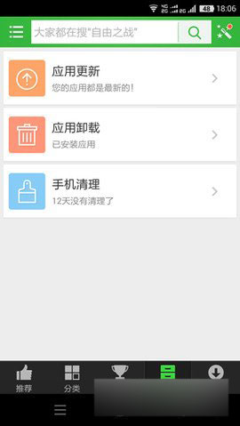 上图是大神X7全网通版自带的应用商店,通过这个应用商店可以轻松的下载时下热门的软件和游戏。同时,应用商店也会及时提醒用户将应用更新到最新的版本。当手机内的应用安装包积累到一定程度时,也可以使用手机清理功能,来删除多余的安装包,从而释放更多的手机空间。