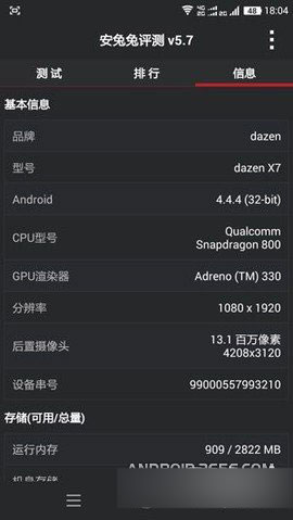 通过常用的跑分软件安兔兔我们可以看到,大神X7全网通版的成绩轻轻松松的超过了42000,和去年的旗舰三星S5差不多。到目前为止,大神X7全网通版的硬件配置依然十分主流。