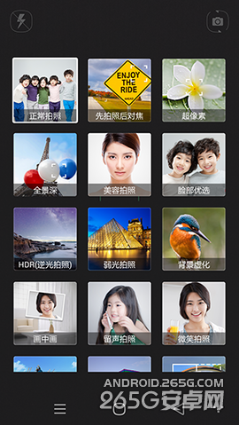 大神X7全网通版自带的照相应用有三种模式:视频、拍照、专业。在拍照模式下,又内置了16种拍照功能,包括先对焦后拍照、弱光拍摄、HDR(逆光拍摄)、背景虚化等比较特色的功能。