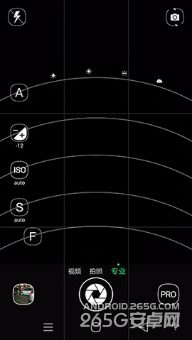 而在专业拍照模式中,可以选择打开九宫格构图线,从而在拍照的时候可以对照片的构图进行更好的把握。另外专业拍照模式可以手动调整白平衡、曝光度、ISO感光度、快门速度和焦距。在弱光拍照的情况下,手动进行快门速度和ISO感光度的调整可以达到更好的拍照效果。