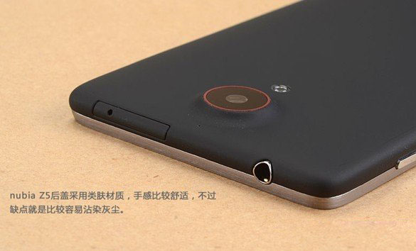 Nubia Z5后盖采用类肤材质,手感比较舒适,不过缺点就是比较容易易染灰尘。