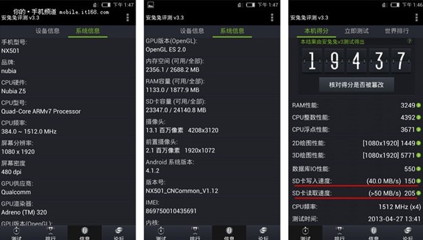努比亚Z5安兔兔跑分达到19437分