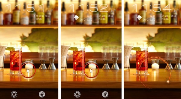 系统方面,努比亚Z5采用安卓系统内容,这款手机属于安卓深度开发板,界面表现不错。Nubia Z5通过长安解锁,而相机和音乐功能,则需要拖动到圆环中才能打开。在解锁界面中,能够选择 是否显示天气和短信通知,另外用户也可以按需定制锁屏壁纸。