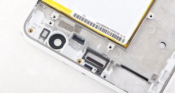 为了能够更加精准的将耳机孔、红外孔和将在麦克风孔控制在顶部中心位置,荣耀6 Plus内部的铝镁合金金属架上进行了精确的分区,将三个小组件用铝镁合金隔开并固定,这其实就是典型的ID设计和内部设计的同力合作的结果。