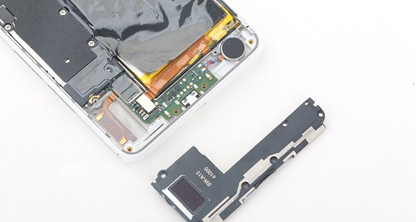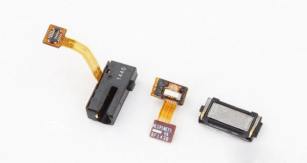 图为拆解下来的听筒、耳机接口、光线距离传感器特写。