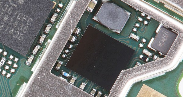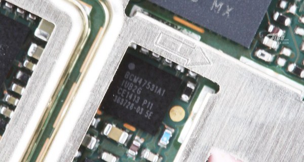 图为博通BCM47531定位芯片特写,该芯片支持GPS、格洛纳斯、中国北斗定位。