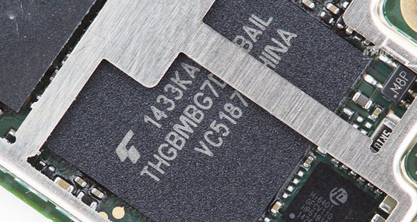 图为东芝16GB eMMC5.0闪存芯片特写。荣耀6 Plus联通版/移动版均搭载16GB ROM,而双4G版搭载32GB ROM。