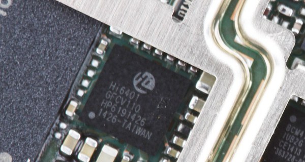 图为华为自家海思Hi6401音频解码芯片特写,配给麒麟925八核处理器内置的Tensilica HIFI3 DSP一同使用。