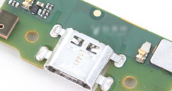 图为荣耀6 Plus主板底部的MicroUSB数据充电接口特写。