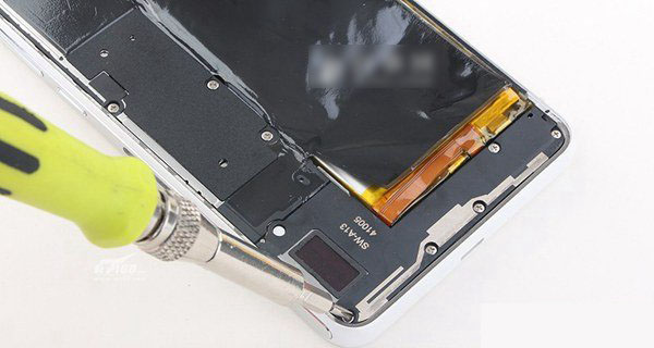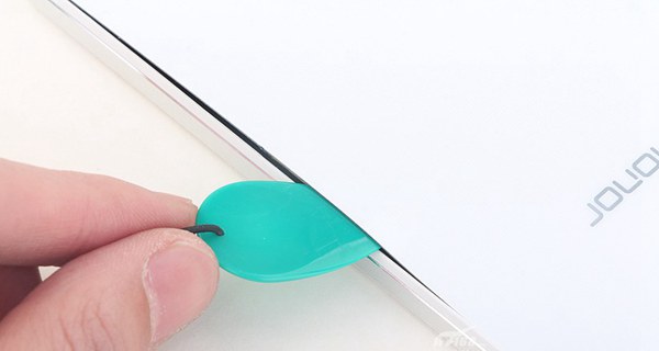 拆机需要从后壳开始,华为荣耀6 Plus在机身设计上依旧延续了上一代荣耀6的设计风格,所以拆机仿生也大致相同。荣耀6 Plus采用了玻璃纤维的后壳设计,后盖采用胶粘的方式贴合在整机背部,拆解的时候,需要使用拨片。