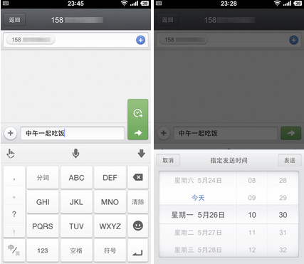 锤子手机短信的一些特色功能老罗在发布会上同样使用了比较长的时间来给大家进行演示操作,而实际使用当中我们发现一些小功能的加入给体验方面带来了较大的加分。短信支持定时发送功能,只要编辑好内容长按发送键即能弹出定时发送按键。这点设计在其它国产手机目前是没有做到的,我们只能说老罗你的情怀真够人性啊。