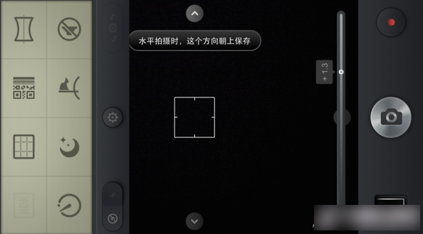 我们可以看到锤子手机的拍照界面依旧十分简洁明了,几个图标足以体验会各项功能,在拍照时我们也可以通过机身左侧的实体按键手动调节曝光补偿。