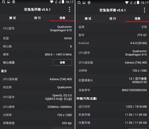 安兔兔显示的硬件信息