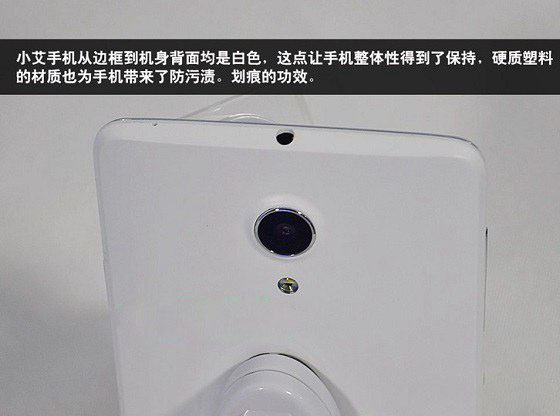 小艾手机从边框到机身背面均是白色,这点让手机整体性能得到了保持,硬质塑料材质也为手机带来了防污渍的功效。