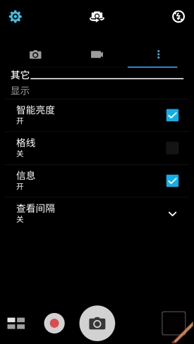 拍摄界面方面,基于Android 5.0定制的UI搭配,足够简约也足够简单,除了虚拟快门和触摸屏幕拍照外,也支持音量键拍照。