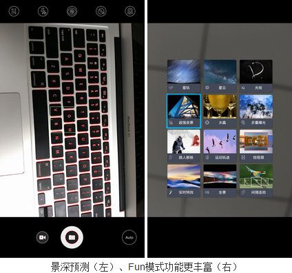 NeoVision 4.0拍照技术,配备了Auto(自动)、Pro(专业)以及Fun(娱乐)三种拍摄模式,除了拥有对焦测光分离、独立白平衡等特色功能外,还增加了景深预测和手动调焦功能。最值得一提的是,中兴对星星已经心水到一定程度了,像Fun模式就可以支持星轨、光绘拍摄、星云、超强夜景等模式,真的可以和星星同步了。