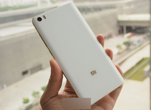 手机背部的logo处特写,可以看出小米Note顶配版的logo颜色换成金色,底下相关信息也去掉了。