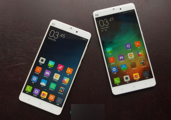 从前面板来看,小米Note顶配版和标准版如出一辙(图中左为顶配版,右为标准版)。