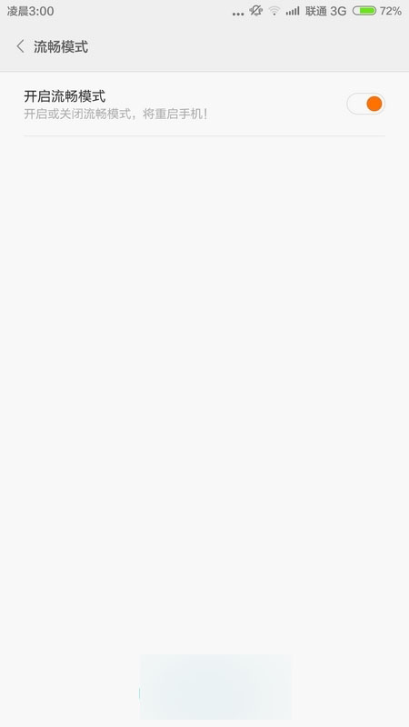 小米Note顶配版的MIUI不再有“性能模式”,取而代之的是“流畅模式”,切换以后需要重启。