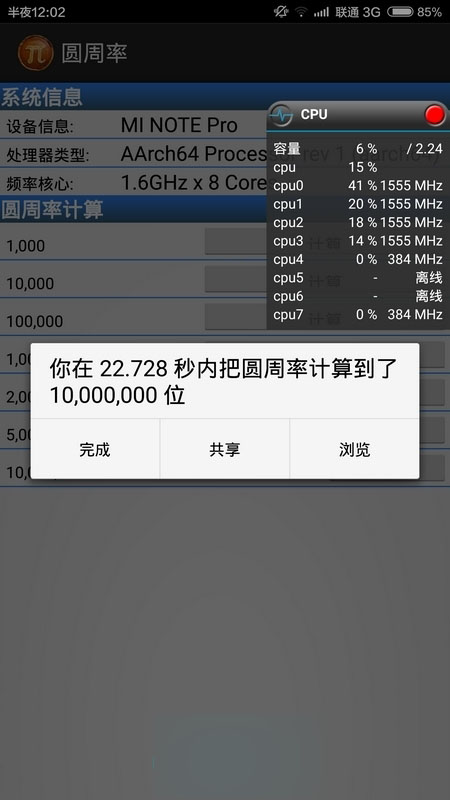 圆周率测试中,小米Note顶配版也的确比其他相同SoC的手机更强,看来小米对骁龙810的优化水准的确要比其他厂商更高。